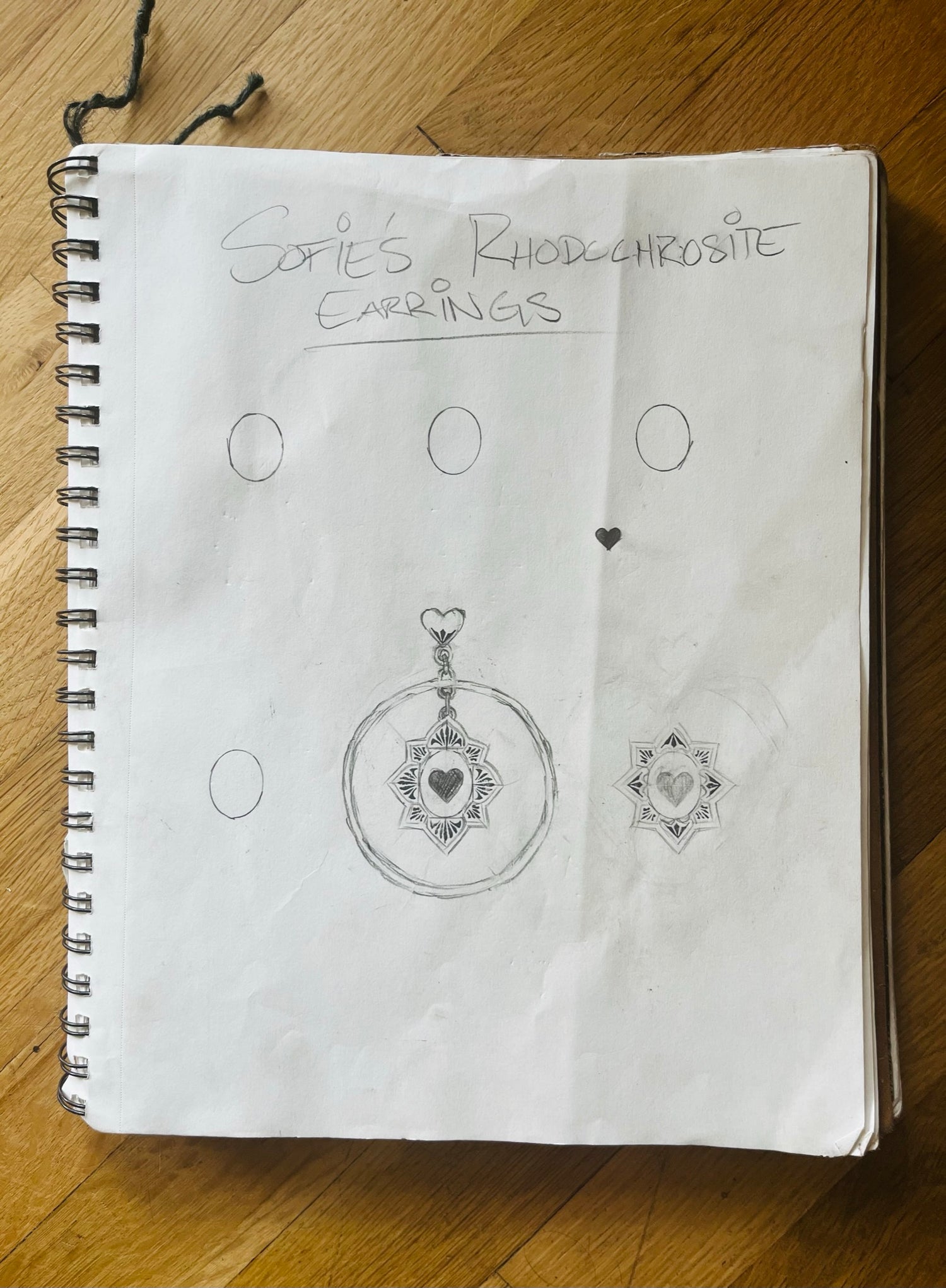 Each of Six of Wands Designs Custom Pieces starts with multiple sketches in coordination with the purchaser to achieve the desired composition and feel.