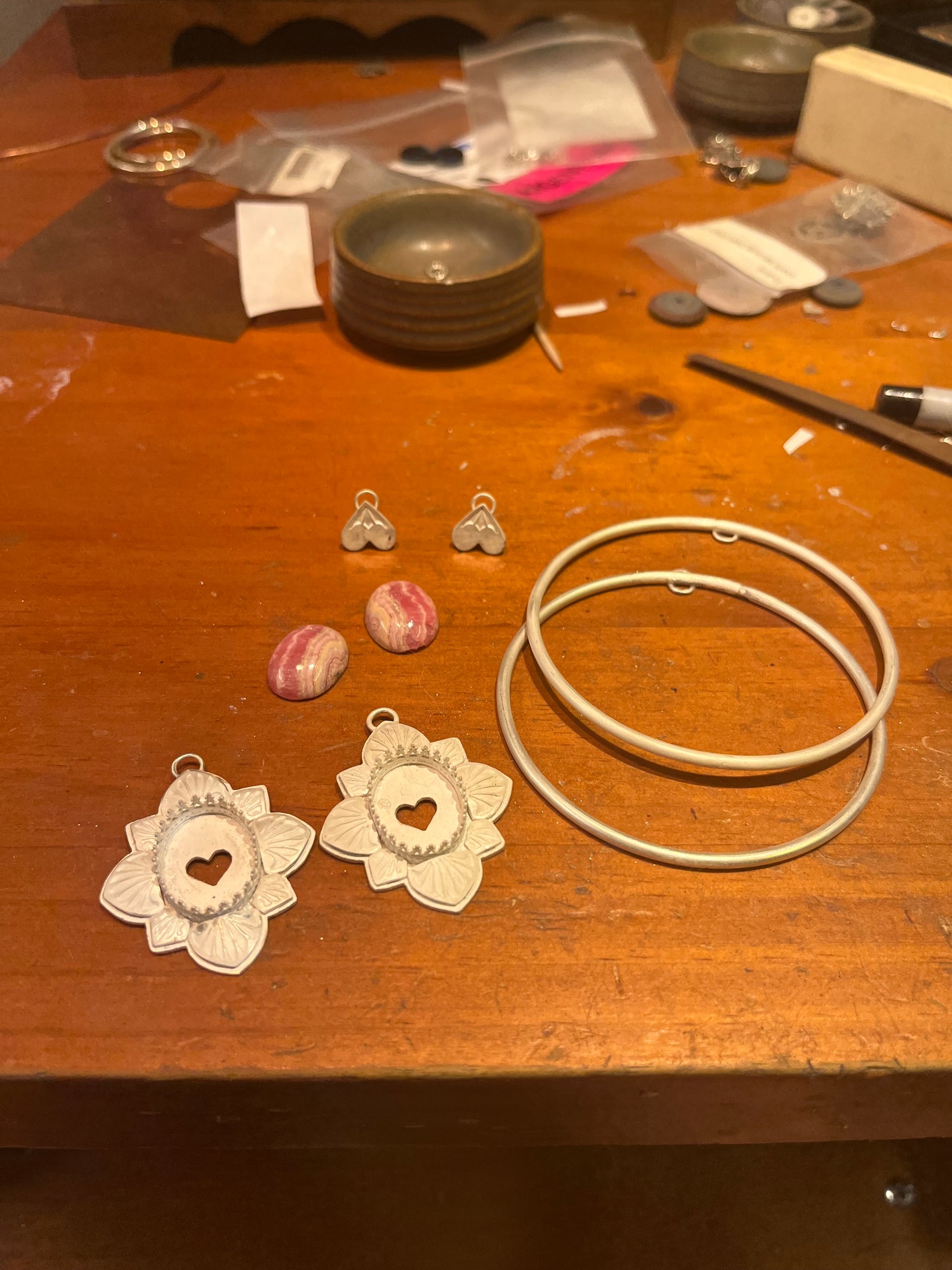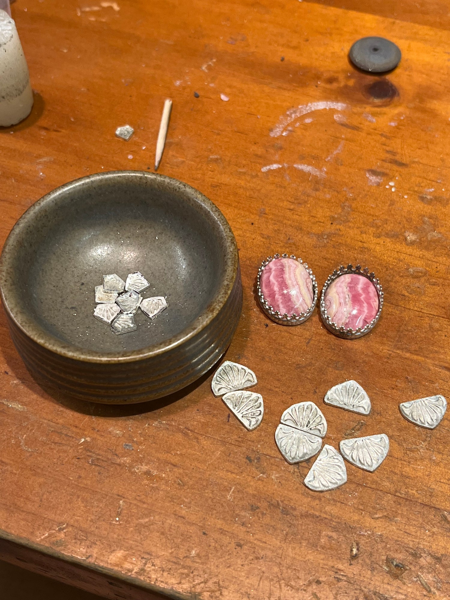 The building blocks of the design are then hand-sawn, stamped, filed, domed, and soldered accordingly